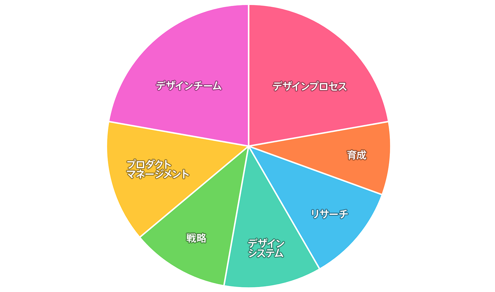 プロダクトマネージメント、デザインシステム、リサーチといった他カテゴリも、結局のところ現場の方達(主にデザイナーと PM)が働きやすくするための手段と捉えて進めています。クライアント組織によって抱えている課題は違いますし、取り組んでいる内容も異なります。けど、全体でみたときに様々なテーマがバランスよく分布していたのが興味深かったです。